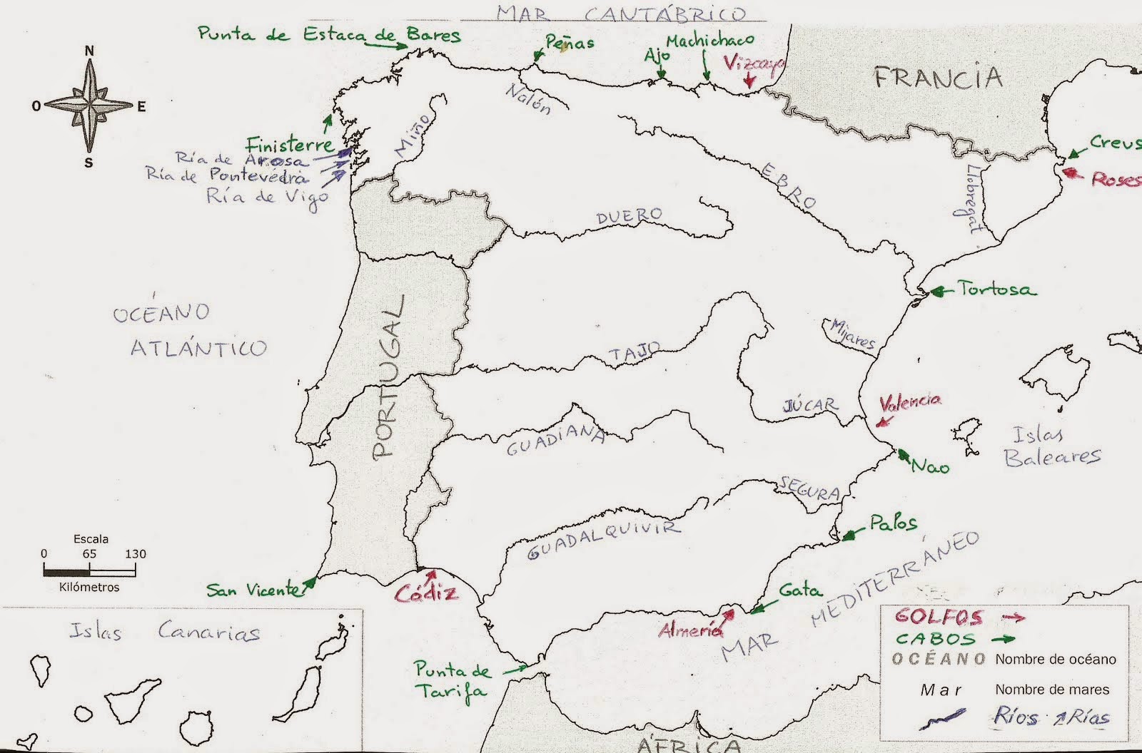 - Rías, cabos y golfos más destacados.